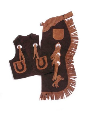 Made from genuine suede this set includes batwing style chaps complete with fringe and matching vest Small approx size 2-3 Medium approx size 4-6 Large approx size 7-10 Color Black Read More..