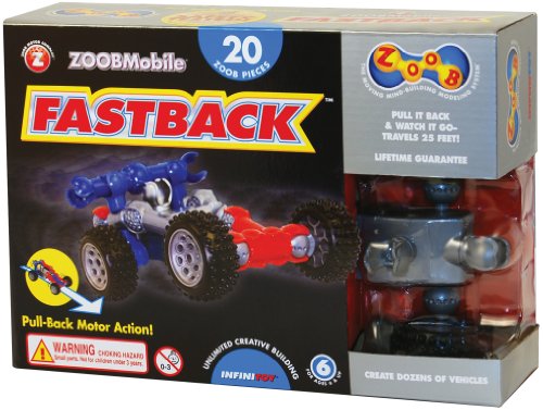 pThe ZOOBMobile FastBack features a pull-back friction motor so kids can create their own ZOOBMobiles and make them race across the floor The Fastback features 20 ZOOB pieces and 4 high-quality tires that are notched so they work like gears Because ZOOB pieces snap together so many different Read More..
